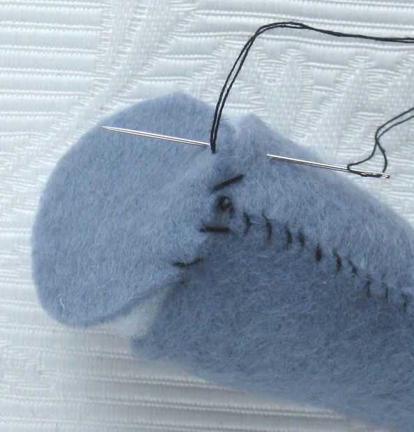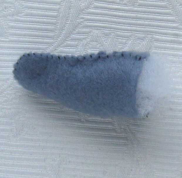 4. cuando se han cosido alrededor del borde curvado, rellenar el cuerpo con relleno. Ver la tercera foto.