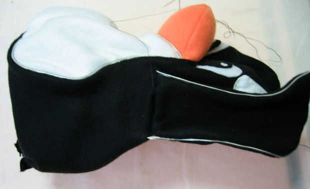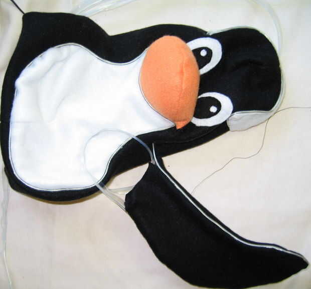 El siguiente paso es a línea de las alas con alambre y sujete a Tux. Corte un pequeño agujero en un lado de Tux donde la parte delantera del ala se fije y alimentar EL alambre a través de él desde el interior del pingüino de al exterior. Una vez más, dejar suficiente cable en el cuerpo por lo que no hay demasiado apretado, deformar el cuerpo del pingüino.