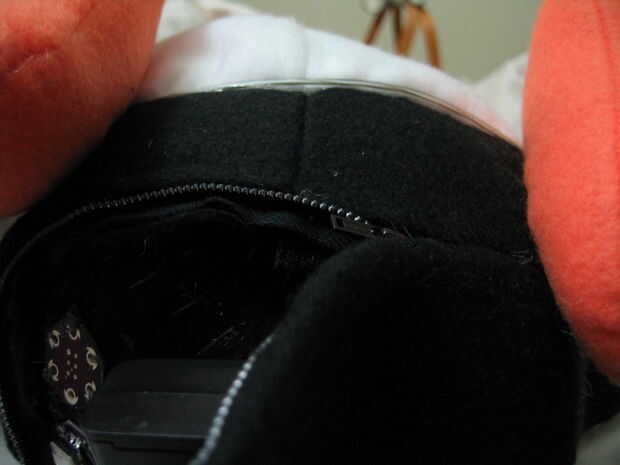 En el paso final, añadir la segunda pieza de derrier con una cremallera (o velcro) para mantenerlo en su lugar. En primer lugar, decidir dónde colocar la cremallera. No es necesario recorrer el camino entero, así que elegí a coser el extremo de la cola sobre el uso de un normal oculta escalera puntada y luego añade la cremallera va alrededor del frente.