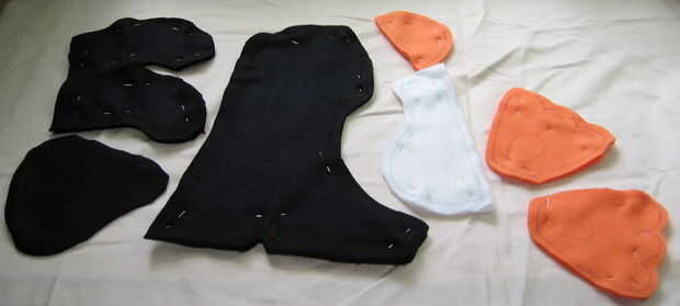 La imagen muestra las piezas cortadas, todo doblado y cubrió juntos, a excepción de la segunda pieza de derrier que me di cuenta que necesitaba más adelante.