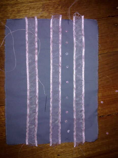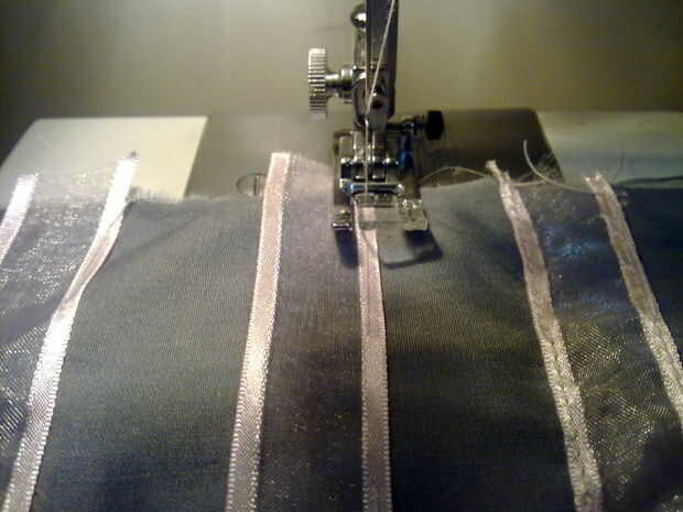 Si usas robbon, descartar una línea usando una regla y tiza para asegurarse de que usted cose en recto.