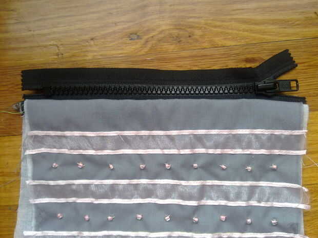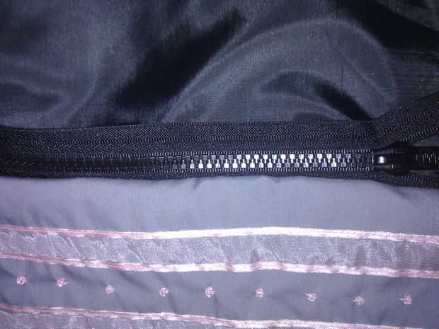 Coser un lado de la cremallera. Coser la cremallera en abierto. Tenga esto en cuenta: al pie de la máquina de coser que tenga que cambiar a uno que es para coser cremalleras, especialmente si el zip es buldgy.