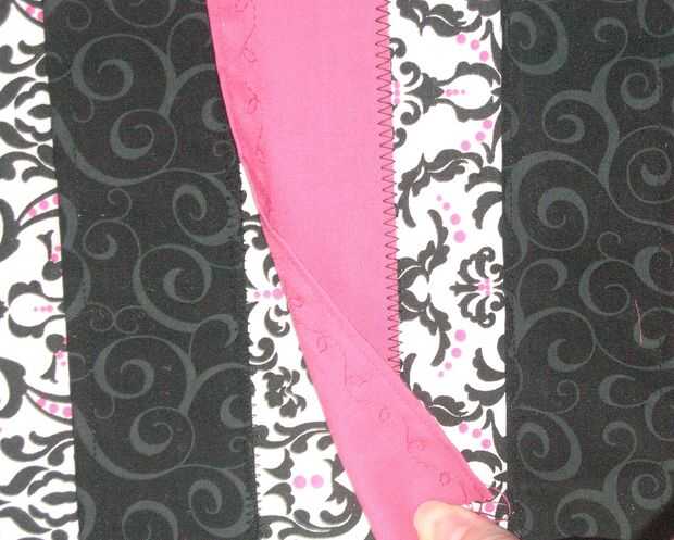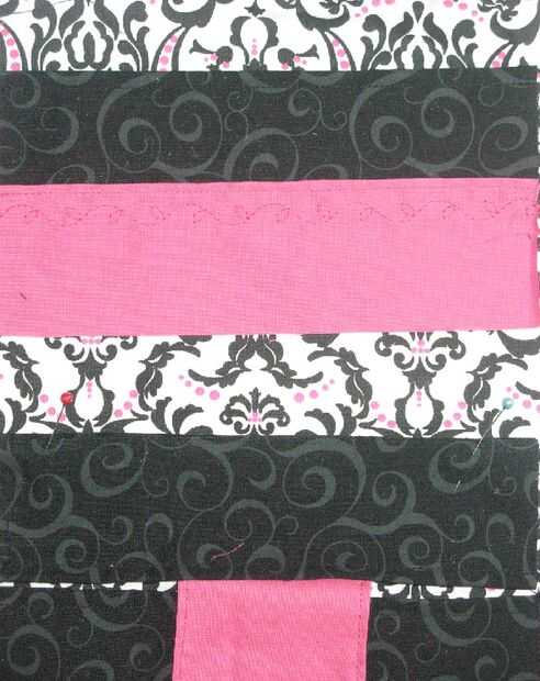 Ahora toma el último bolsillo y colocarlo por lo que es 1,5 pulgadas de la parte superior del bolsillo medio, pero ahora vas a bajar para que quede mirando el borde cosido en el bolsillo de la DS. PIN para mantener en su lugar y coser a lo largo de la parte inferior de este juego de bolsillo.