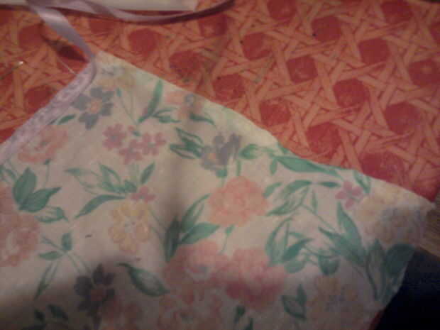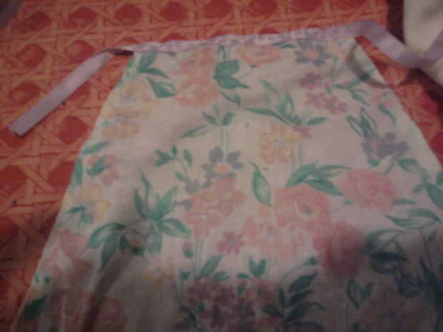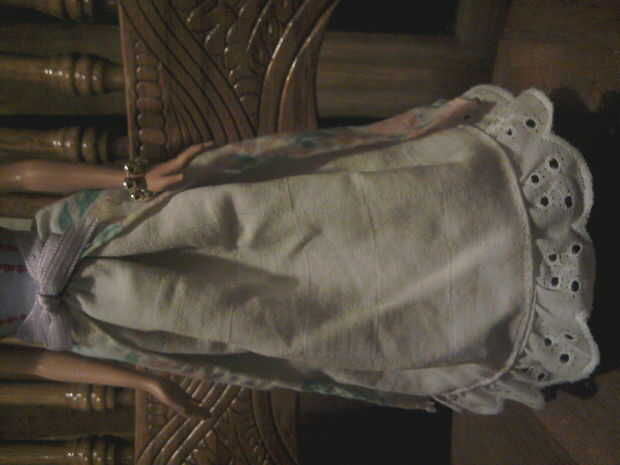 Esta vez corte trapecio, (cortar la longitud para que pudiera ver los encajes de la falda de debajo.) y lo encerrado todo el camino alrededor y cosido en una cinta.
