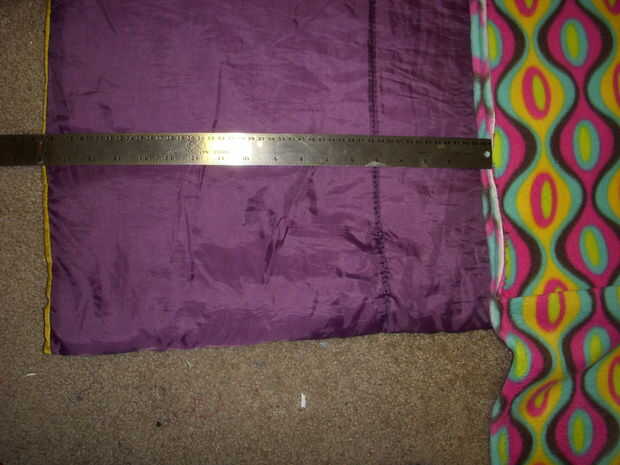 Sé que 60 pulgadas no es suficiente conocer la longitud de mi saco de dormir, así que estoy midiendo desde la orilla de mi revestimiento, hasta la cremallera del saco de dormir.