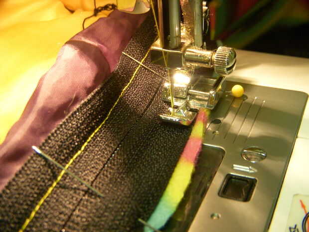 yo he cosido las cremalleras forro a la bolsa de dormir, y he recortado y cubrió el paño grueso y suave de la cinta de la cremallera. Ahora es el momento para coser el paño grueso y suave en las cremalleras de la guarnición.