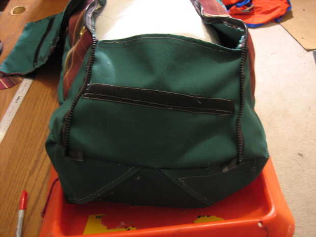 También no estaba muy seguro acerca de cómo hacer la bolsa de cierre y evitar que la nieve alcance dentro. Deliberadamente no lo hizo cortar las cremalleras (que eran más largas que la parte superior) y que me permitió hacer una pieza separada para solapar la tapa del extremo. Coser un pedazo de Velcro a la superposición y la tapa permitida la bolsa de cremallera totalmente había cerrada y previno cualquier nieve entren dentro.