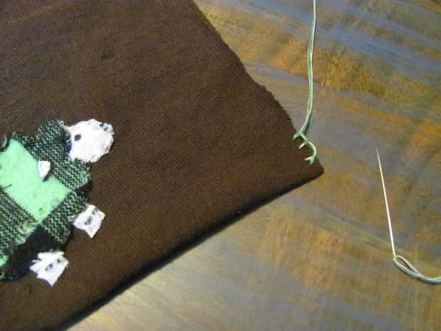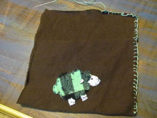 Usé 2 hilos para seleccionar la puntada. He usado verde y blanco (las ovejas dieron las ideas de color)