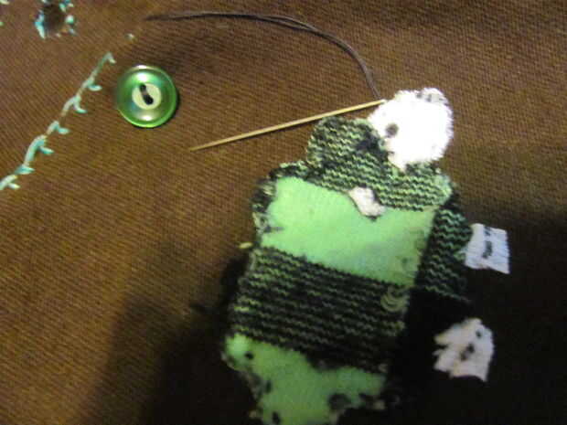Último es el botón. Sólo cortar una hendidura en la aleta y coser alrededor por un tiempo. Luego cosí el botón detrás de la rendija (de la tela detrás de él). A continuación, puede cerrar la bolsa (utilizando el botón).