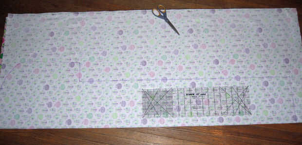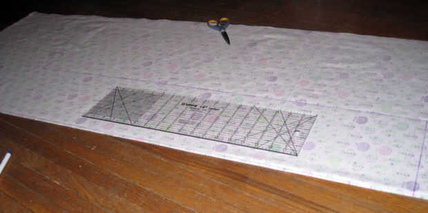 Basado en cómo gruesa quieras la bufanda que, te dibujas la línea vertical. Saqué mi línea de ocho pulgadas de la tapa porque quería una bufanda gruesa agradable. Hice mi bufanda 36 pulgadas de largo para que tuviera suficiente longitud de embalaje. : D