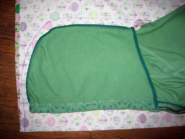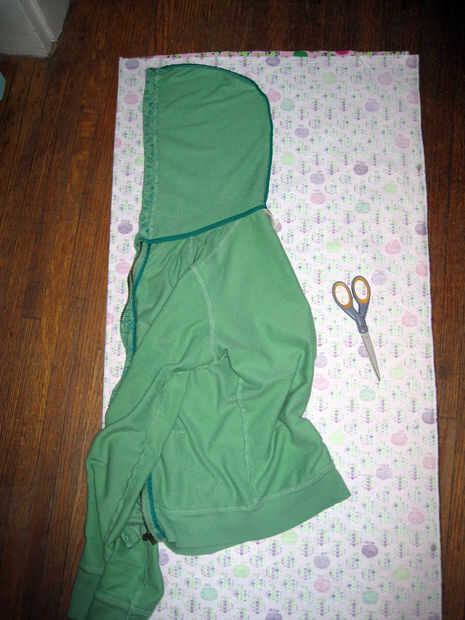 Su sudadera favorita y vuelta adentro hacia fuera y la campana tan plano como sea posible a lo largo del doblez del medio. Coloque la abertura de la campana recto a lo largo de la tapa un par de pulgadas del borde.