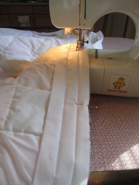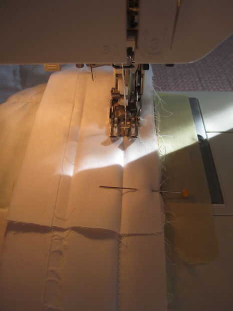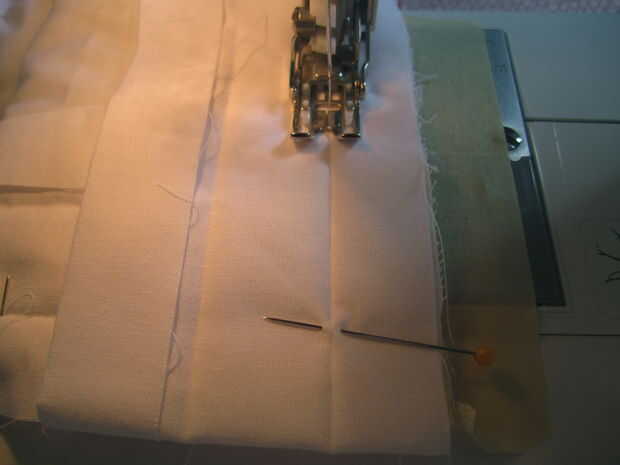 Vamos a ser costura el pliegue como se indica en la primera foto. Que puntada puntada puntada hasta llegar a unas pocas pulgadas de la primera curva. Las esquinas son un poco complicadas.