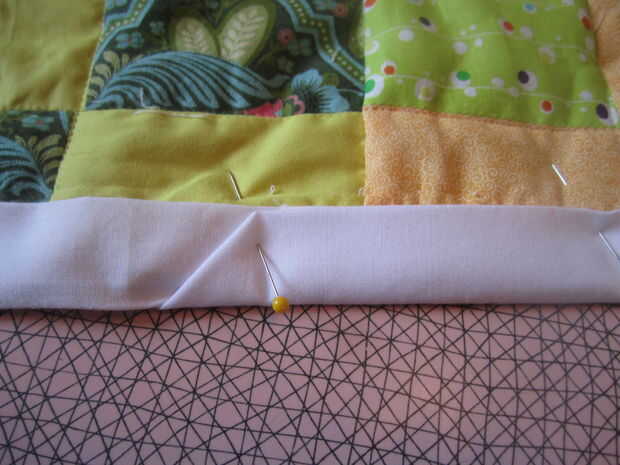 Lo más importante centrarse en cuando fijando el atascamiento al frente es para cubrir las líneas de la puntada de colocar la cinta bies en la parte posterior. Asegúrese de tirar sobre eso y luego pin. Usted puede ver las líneas en la figura 2 de la puntada. :)