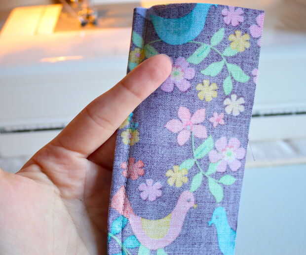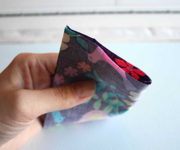Después de dedo presionar, doblar la tela sobre por lo que se enfrentan los lados del derecho. Asegúrese de que la costura que solo cosidos es justo al borde de la tela.