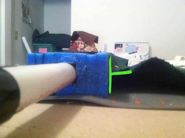 Perno de la tela para que se sienta en el centro de la hoja, no en una esquina. Lo que menos extraño y da un mejor ajuste cuando llegamos a la parte superior curvada de la hoja.