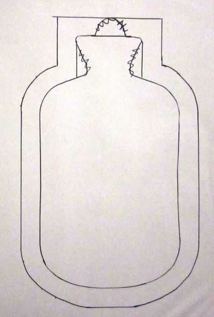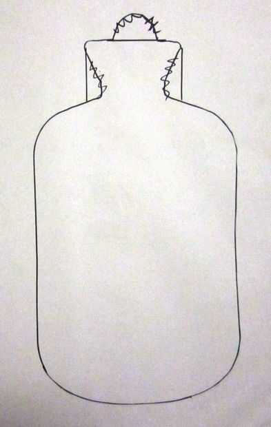 Dibujar una línea 1"(2,54 cm) del trazo original de la botella de agua, recorriendo todo el camino. Este 1" incluye ½" (1,2 cm) de margen de costura y ½" de la facilidad. Este es el bloque principal y el panel frontal. Corte 1 en forro polar.
