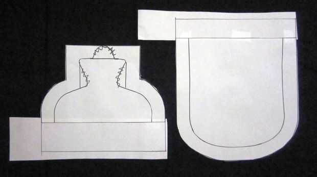 A la pieza inferior hacia atrás, un trozo de papel hasta el borde de corte de cinta y agregar 1½"(3,8 cm) margen de dobladillo. Corte 1 en paño grueso y suave.
