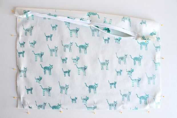 Mantenga la cubierta derecho lados juntos y pin todo alrededor de los bordes. (Me gusta a prender los extremos del lado de la cremallera para arriba como sentaría si la cremallera no estaba allí)