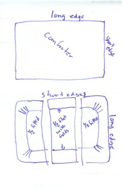 En primer lugar, asegúrese de que el lado largo de la sábana se ajusta sobre la corta longitud de su consolador.  Compruebe también para asegurarse de que si se va a cortar la sábana en la mitad de longitud sabia y colocarlo sobre los extremos de su consolador, que el espacio entre se va salvar por la hoja plana corte longitud sabio.  Otra consideración es el patrón de la impresión en sus hojas, por ejemplo si usas tela escocesa, tal vez no coincida con las rayas bien después de coser.