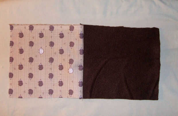a continuación poner los dos lados del derecho juntos y coser en la parte superior. Cose a través de los dos lados más cortos, no los lados más largos del rectángulo. Pone su proyecto fuera plana como se muestra en la imagen.