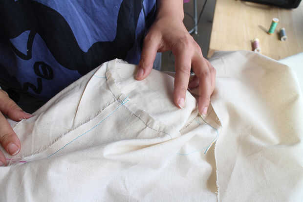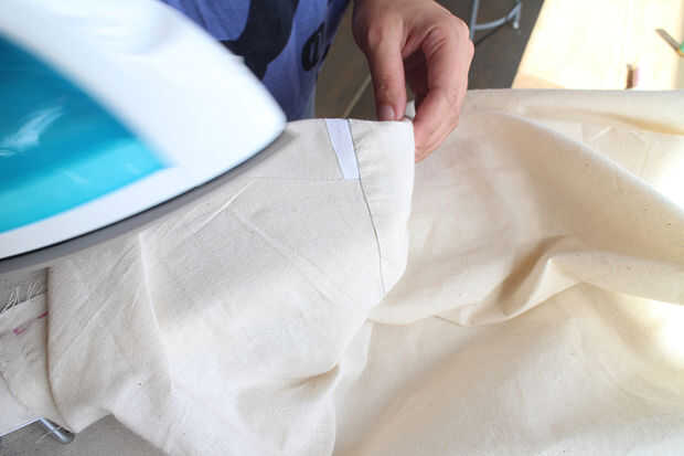 Desde el interior, presione el SA hacia el interior de la tapa de la manga. Desde el exterior, presione utilizando una manga de planchar o el extremo más pequeño alrededor de una mesa de planchar de tamaño normal. Utilice un poco de vapor de la forma y la ronda de la tapa de la manga.