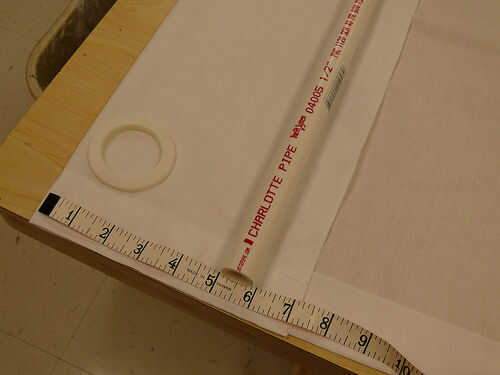 Si utiliza el mismo tamaño de pvc y los ojales y luego doblar el material 7" y.  El bolsillo de PVC es 4" medida y pin toda la longitud de la tela.  Coser la parte superior de la tapa, parte posteriora costura a cada lado.  A continuación, coser a lo largo 4" perno detrás de costura a cada lado, retirar pernos como vas.  Repita en el otro lado.