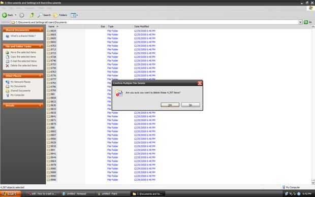 5 ahora esperar un tiempo, mientras que el ordenador cuenta para arriba y te muestra las miles de carpetas que acaba de hacer. (esto podría chocar un ordenador, casi hizo a la pc de doble núcleo en)