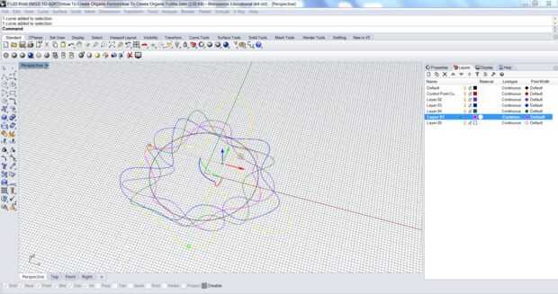 Una vez que tengas todas tus curvas dibujados, se seleccione una de las curvas y utilizar la herramienta de Gumball para mover la curva en el eje Z. La altura que se utiliza para mover la selección hacia arriba se basa en su preferencia, pero para este ejemplo usé 5 pulgadas.