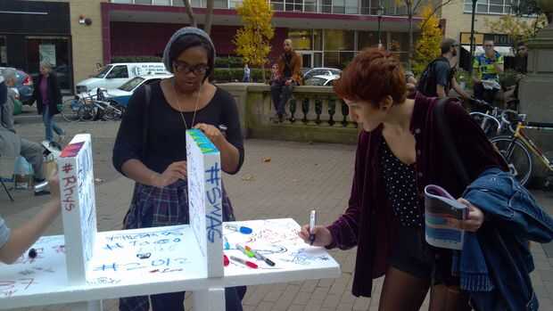Empezar a dibujar o escribir en él mismo. Sugiero con amigos (al menos 2 otras personas) ya que será fun - diversión genera actividad! Una persona debe ser capaz de explicar lo que está haciendo cuando se acercó!