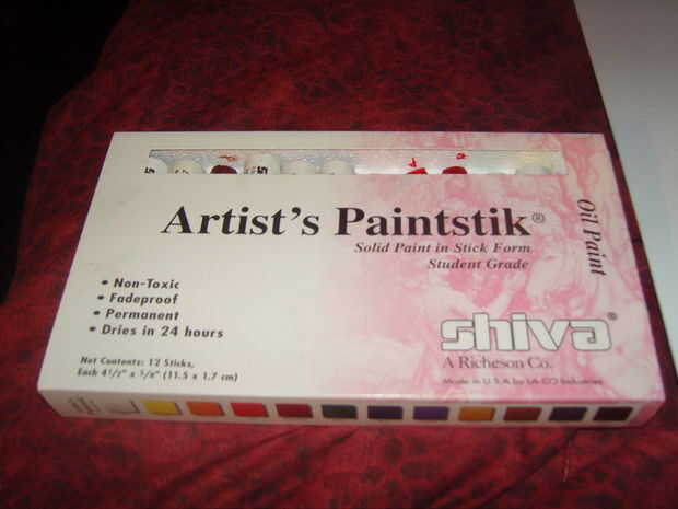 Ahora usted tendrá que decidir lo que va usar y recoger lo que necesitará. Para esto, decidí usar palillos de la pintura de aceite. Básicamente 's pintura de aceite con endurecedor ya mezclado, en la forma de una cosa de gran tamaño tipo lápiz. Usted no tiene que preocuparse de acertar con las proporciones de la pintura y el endurecedor y estas seque durante la noche.