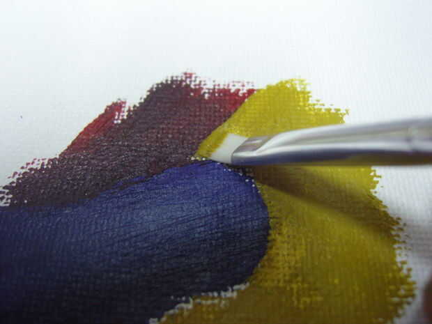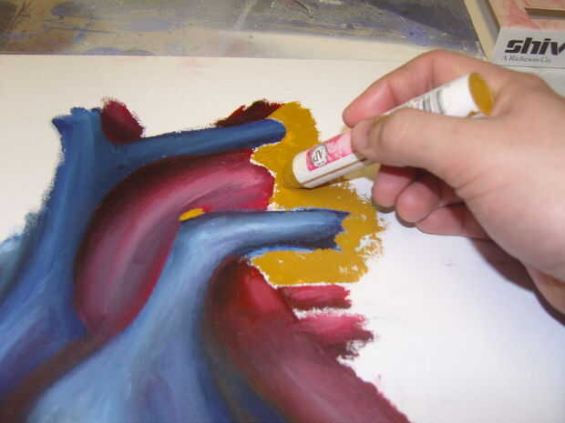 Quería que el fondo ser un degradado de amarillo a negro para crear un efecto viñeteado en los bordes. Para empezar, fui por la parte exterior del corazón con la varilla amarilla. No probar e ir a la derecha hasta el borde. A continuación, tomó un pincel pequeño y afilado y pulido de la pintura hasta el borde para crear un borde limpio y fresco. Esto es donde ayuda a poner en mucha de la pintura a la vez para que tengas suficiente para cepillar alrededor. Fui alrededor del corazón todo como esta.