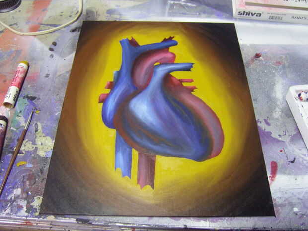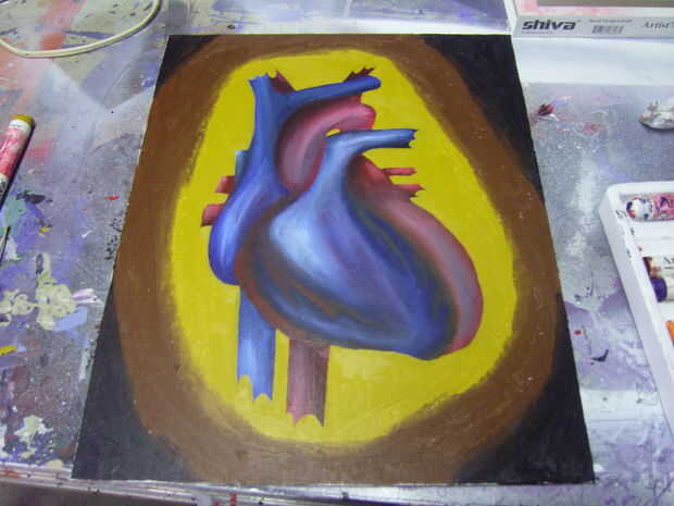 Después de terminar aplicando el color amarillo, apliqué marrón a las afueras de que. Si quieres hacer un degradado, ayuda a añadir un color entre el color base y el negro para hacer la mezcla más suave. Es opcional, pero siento que hace que el producto final mucho mejor. Finalmente, he añadido negro para los bordes muy exteriores. Otra vez, se aplican áspero y luego mezclarlo suave. Me parece que a partir de color más claro y mezcla hacia los trabajos más oscuros mejor.
