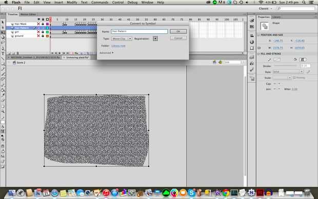 Seleccione "Clip de película" o "gráfico" (yo prefiero los clips de película) y haga clic en "OK", esto añadirá el símbolo a la biblioteca que ahora podemos arrastrar y soltar en la etapa y aplicar efectos como cambiar el color, tamaño y alfa (opacidad).