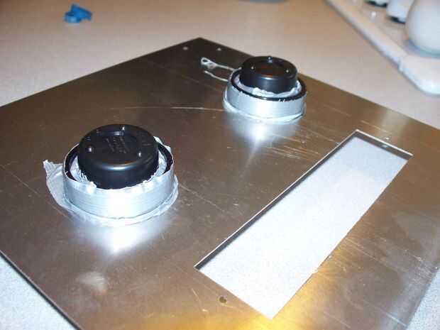 Siguiente paso fue instalar los respiraderos de rejilla de aluminio para auriculares. Esto se logró también con cinta adhesiva.