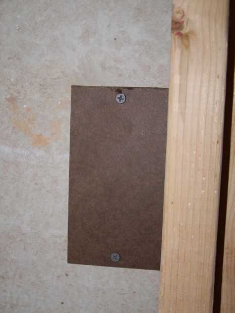 • Fijar primero un acoplamiento de alambre o un pedazo de madera sobre el agujero desde el interior de la pared...