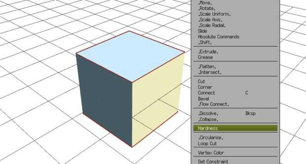 A veces habrá formas que usted quiere hacer retener bordes duros; para esto, se puede especificar la "dureza" de un borde. Seleccionar todos los bordes superior e inferior de un cubo y haga clic derecho, seleccionar "dureza", entonces "duro". Ahora pruebe la vista previa rápida de alisado. A ver el cubo suaviza en un cilindro.