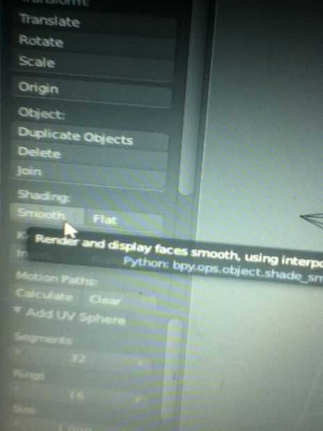 Ahora podemos pulsar (Mayús + A) y seleccione 'Esfera UV' y presione a 'sombreado suave' a la izquierda.