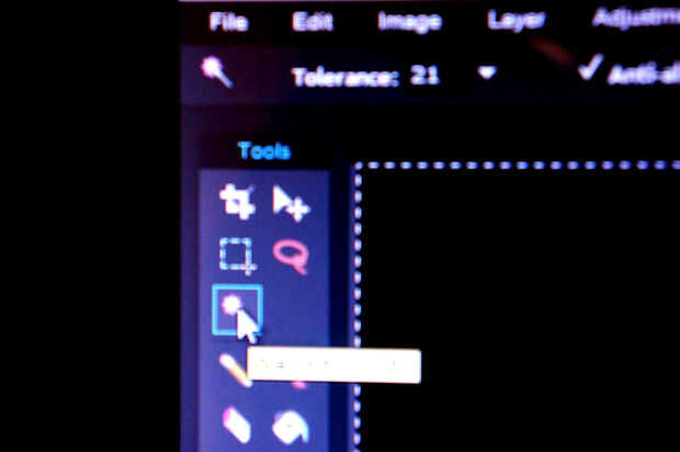 Haga clic en la herramienta varita mágica y haga clic en la nave o el objeto que desea convertir en una copia transparente.
