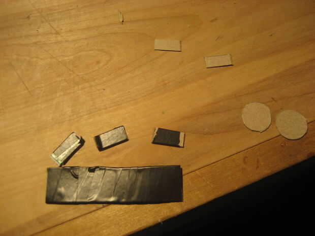 Ahora vamos a cortar una tira larga de la Junta de la tarjeta de la caja de jabón y el rap en tape. Ahora corta tiras poco como la tira larga es amplia y rap con cinta. (es difícil de decir) Y luego cortar dos círculos sobre una pulgada de ancho ancho en el diámetro.