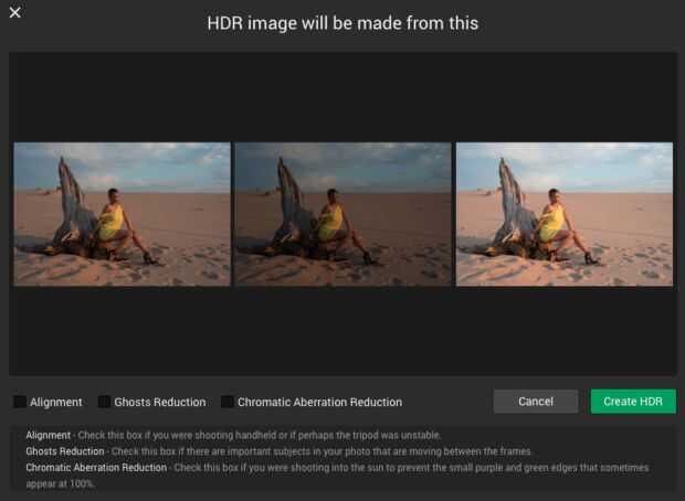 Aplicaciones de software como Aurora HDR voluntad ayudar a sus exposiciones de los soportes se funden en una sola imagen HDR. También obtendrás herramientas adicionales para trabajar con colores, tonos, detalles y estructura. Una vez que las imágenes se combinan juntos, vemos un retrato de la vida real que conserva formas naturales, sensaciones, detalles y la atmósfera. Puede ir más lejos y aumentar los colores o contraste para efectos más fuertes con presets o ajustes manuales.