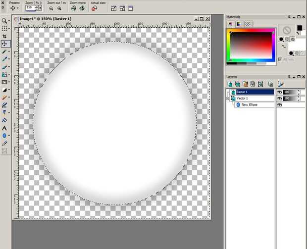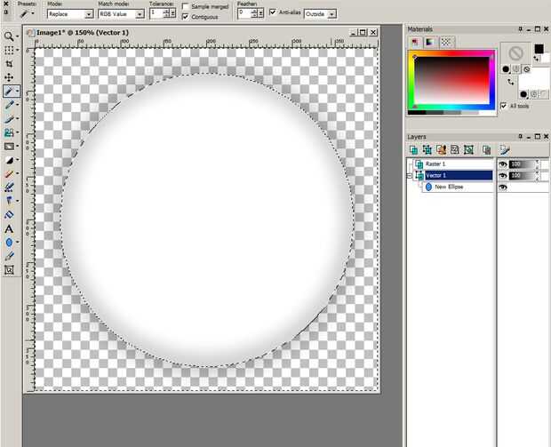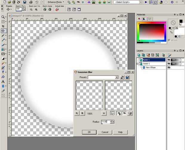 La forma más sencilla de hacerlo es "varita mágica" o seleccione el área fuera del círculo de vector. Luego cambie a la capa de desenfoque gaussiano y presione eliminar. Esto eliminará el desenfoque gaussiano que se encuentra fuera del círculo de vector para que sombra se ven!
