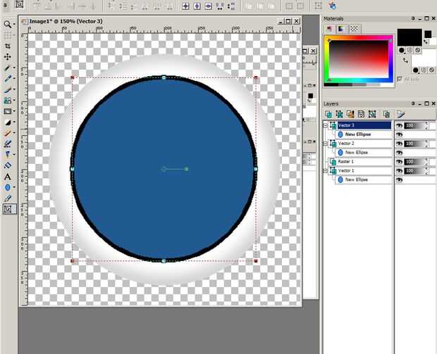 Después de hacer un círculo de vector y cambiando su relleno a azul, tienes que duplicar ese vector. Con la copia, que el centro de claro y la frontera de lo negro.