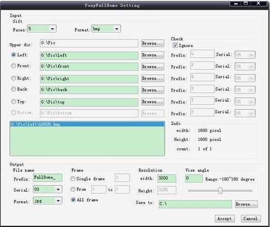 Del Fulldome -> configuración para establecer los atributos de la imagen de domo completo como abajo.