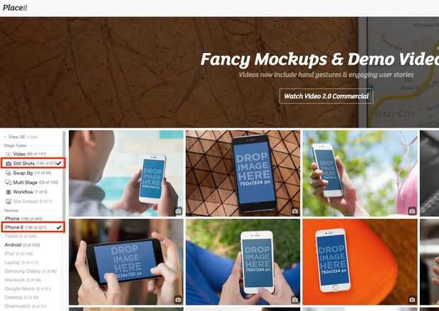 A la izquierda, encontrarás un menú de filtro para seleccionar las categorías que usted necesita. En este caso, seleccionamos todavía disparos (maquetas) y iPhone 6.