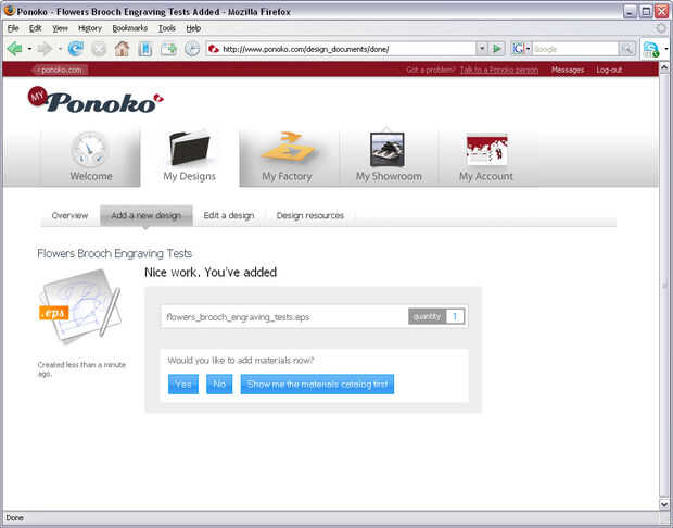 Así que ahora vaya a su cuenta de MyPonoko donde está preguntando "¿quieres añadir materiales ahora?" - y hacer lo siguiente: