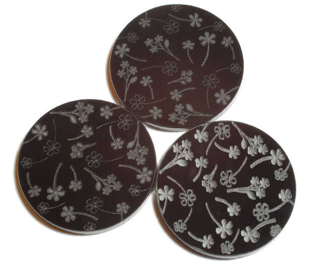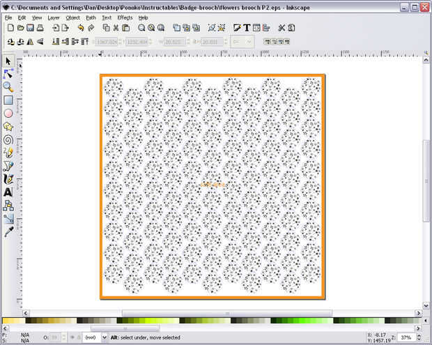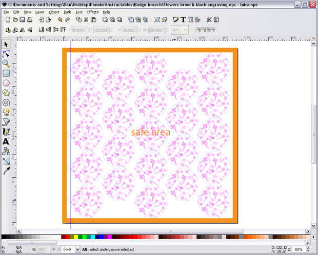 Este enfoque también podría trabajar si cada uno de los diseños de broche fueron completamente único. Si tuvieran una cantidad similar de grabado y corte como las flores, mosaico 23 diseños únicos sobre una P1 trozo de material daría lugar a una similar por costo unitario.