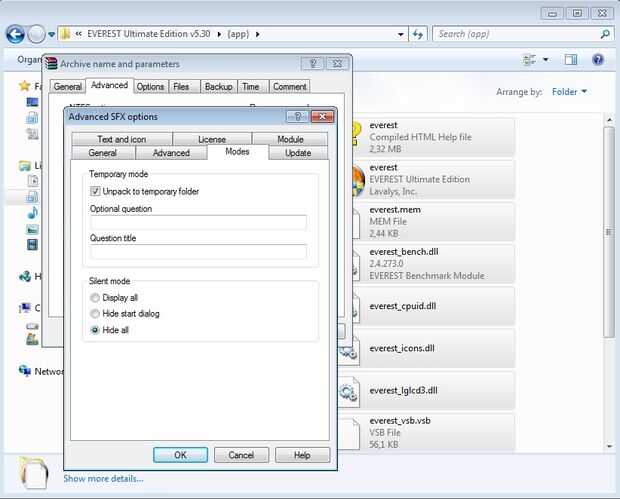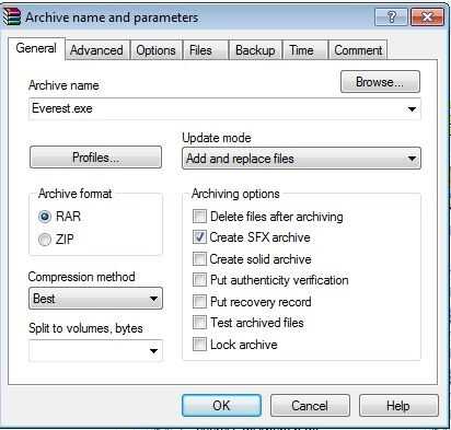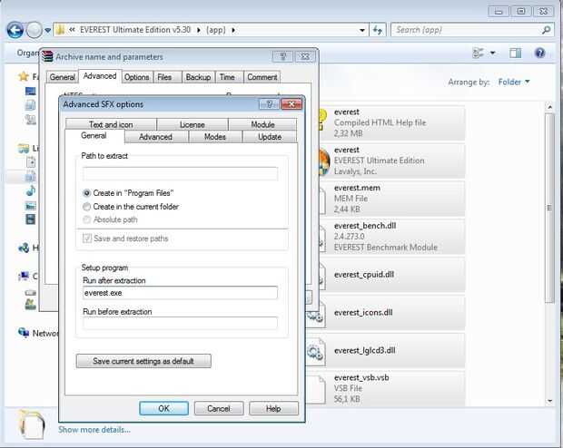 Ejecutar después de la extracción -> pone nombre del archivo de .exe del programa (en mi caso su everest.exe)