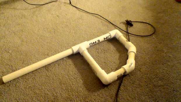 El último paso para la creación de la letra P de PVC de la pipa le tendrá un codo de 45 grados y un trozo de tubo de PVC de 2.5 pulgadas.               Se conecte el codo de 45 grados a la pieza de 2,5 pulgadas de tubo de PVC. Luego conecte un trozo de tubo de PVC de 2.5 pulgadas para el codo de 45 grados. La parte de la tubería de PVC de 2.5 pulgadas que no está conectada por el codo de 45 grados debe conectarse el codo de 90 grados y completa la letra P.                                                                                                                                                                                  El último paso en la creación de la letra V de PVC de la pipa le tendrá dos codos de 90 grados.                                                                      Se conecta uno de los codos de 90 grados a la pieza de 2 pulgadas de tubo de PVC y conecte el codo de 90 grados a la pieza de la parte inferior de la tubería de PVC de 11 pulgadas. Repetir este proceso al otro lado de la V conectar un codo de 90 grados a la tubería de PVC de 2 pulgadas y conexión de codo de 90 grados a la pieza inferior de tubo de PVC de 11 pulgadas.  Haciendo una V completa de tubería de PVC.                                                Recordatorios no olvide asegurarse de que todos los tubos de PVC y las guarniciones están bien conexión, puede utilizar un martillo para asegurar que las piezas no van a derrumbarse.