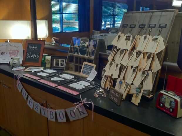 Así que cuando yo estaba pensando ideas de libro de huéspedes... el partido sólo perfecto para mí fue esta idea de hacer mi libro como un escritorio de registro de hotel de los años 40.