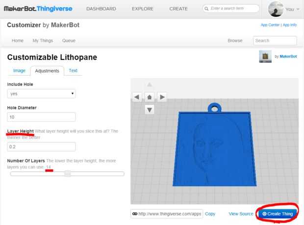 Cómo crear lithopane modificado para requisitos particulares usando el customizer (5 / 10 paso)